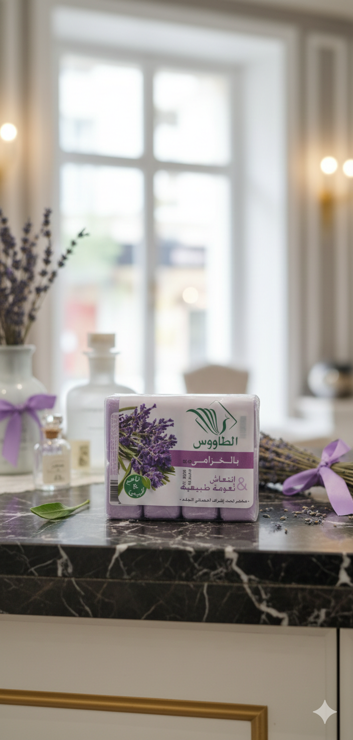 Taous Soap with Lavender is a natural soap enriched with lavender oil, known for its soothing and antiseptic properties. It helps deeply cleanse the skin, calm irritations, moisturize, and provide a refreshing, relaxing scent, making it perfect for daily skincare and relaxation.